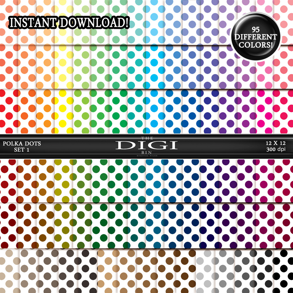 Digital Paper 12X12 Polka Dots Set 1 Colors on White